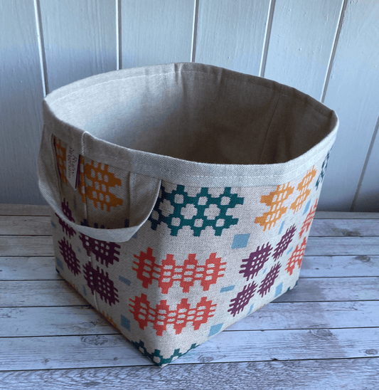 Welsh Blanket Print Oilcloth Small Storage Basket