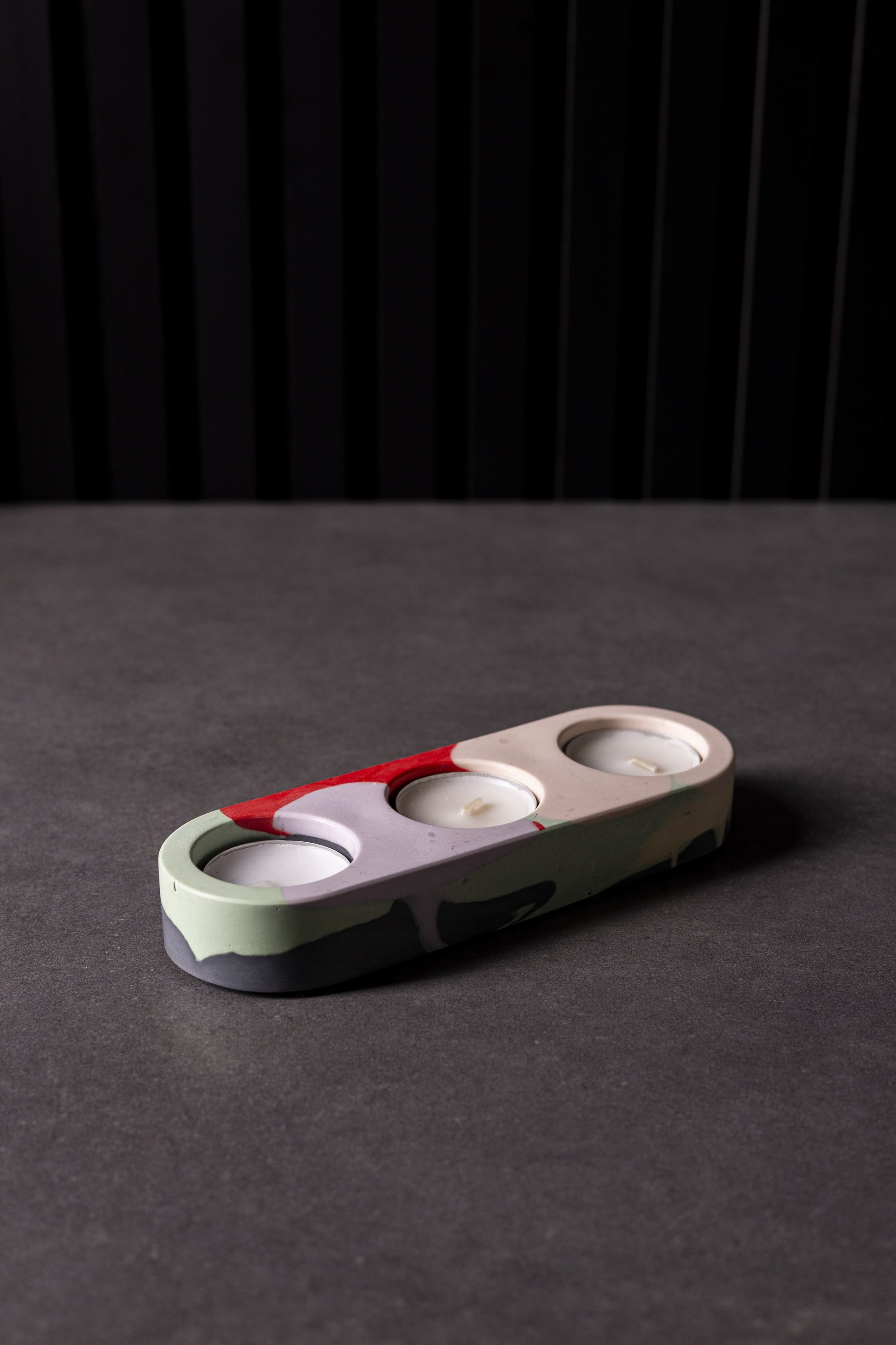Mae'r dalwyr canhwyllau triphlyg bywiog ac amlbwrpas hyn wedi'u gwneud â llaw mewn stiwdio gartref fechan yng Nghaerdydd, Cymru. Ar gael mewn amrywiaeth o liwiau i weddu i unrhyw arddull, mae pob darn yn rhan o gasgliad unigryw sy'n cynnwys patrymau un-o-fath. Wedi'u cynllunio i gymysgu a chyfateb, mae'r dalwyr canhwyllau hyn yn ychwanegu cyffyrddiad di-dor o steil i unrhyw addurn mewnol.