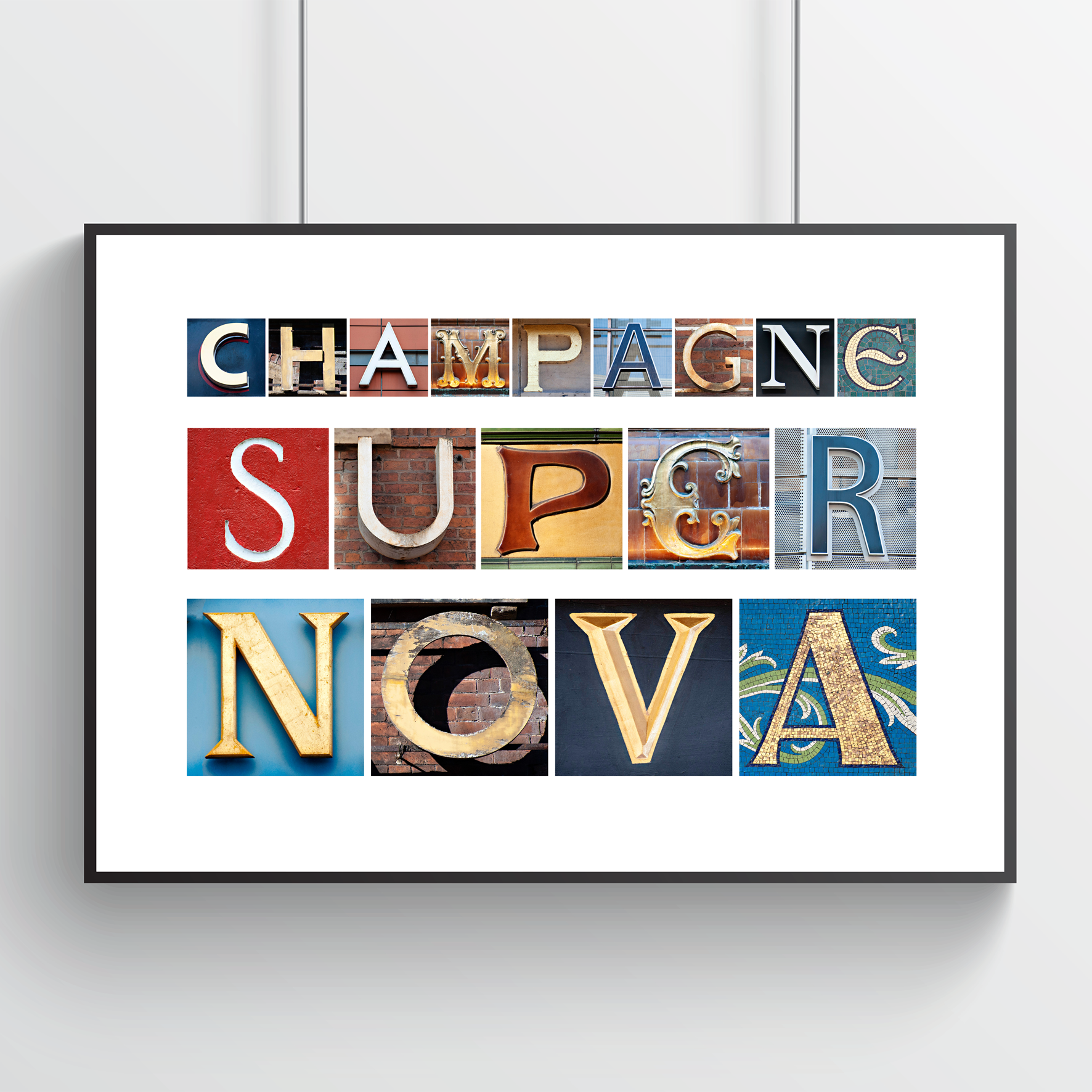 Celebrate the iconic Oasis hit Champagne Supernova with this Oasis inspired Art Print, created from letters photographed on buildings across Manchester.